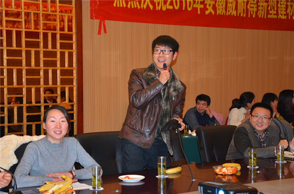 “羊隨新風(fēng)辭舊歲、猴節(jié)正氣報新春”,轉(zhuǎn)瞬間2015年已離我們遠(yuǎn)去,而充滿希望的2016正在以堅定的步伐穩(wěn)步前進(jìn)著,在這辭舊迎新的日子里,安徽威耐得新型建材有限公司為了感謝全體員工一年來的辛苦和付出,于2月23日在安徽齊云山莊-五一酒店召開2016新春年會。公司董事長劉必武及各部門領(lǐng)導(dǎo)率全體員工歡聚一堂,一起總結(jié)過去一年的成就與不足,展望未來一年的方向和目標(biāo)。