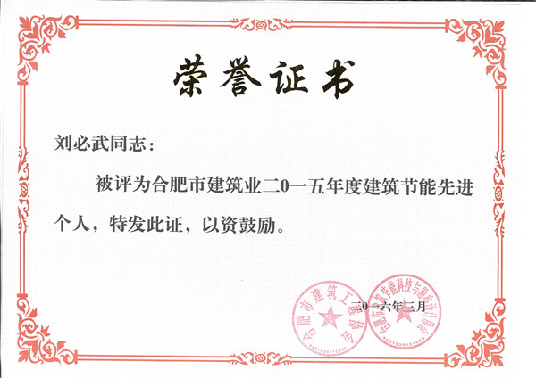 大會(huì)現(xiàn)場(chǎng)宣讀了有關(guān)表彰通報(bào),安徽威耐得新型建材有限公司董事長(zhǎng)劉必武榮獲“合肥市建筑業(yè)2015年度建筑節(jié)能先進(jìn)個(gè)人”榮譽(yù)稱號(hào),省市領(lǐng)導(dǎo)親自頒發(fā)榮譽(yù)證書并合影。建筑節(jié)能先進(jìn)企業(yè)和先進(jìn)個(gè)人的評(píng)選活動(dòng),旨在弘揚(yáng)節(jié)能減排、綠色建筑精神,鼓勵(lì)和表彰在我市建筑節(jié)能行業(yè)發(fā)展中作出突出貢獻(xiàn)的企業(yè)和個(gè)人,提高我市整個(gè)建筑行業(yè)的節(jié)能意識(shí),進(jìn)一步推廣建筑節(jié)能高效技術(shù),宣傳建筑節(jié)能行業(yè)的先進(jìn)經(jīng)驗(yàn)。