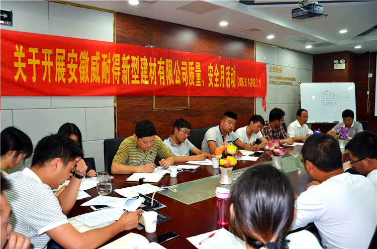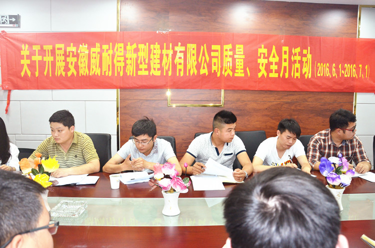 會議總結共有十五點,員工們認真聆聽并銘記在心。在確定質(zhì)量安全活動月的具體任務后,在劉畢顯副總經(jīng)理對公司前景的規(guī)劃中,在員工信心滿滿的狀態(tài)下,我們結束了此次會議,同時也拉開了2016年安徽威耐得新型建材有限公司質(zhì)量安全月活動的序幕。