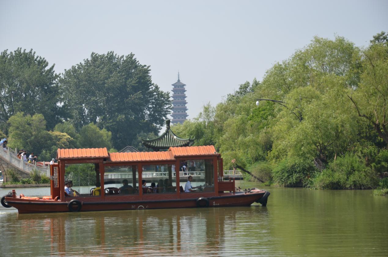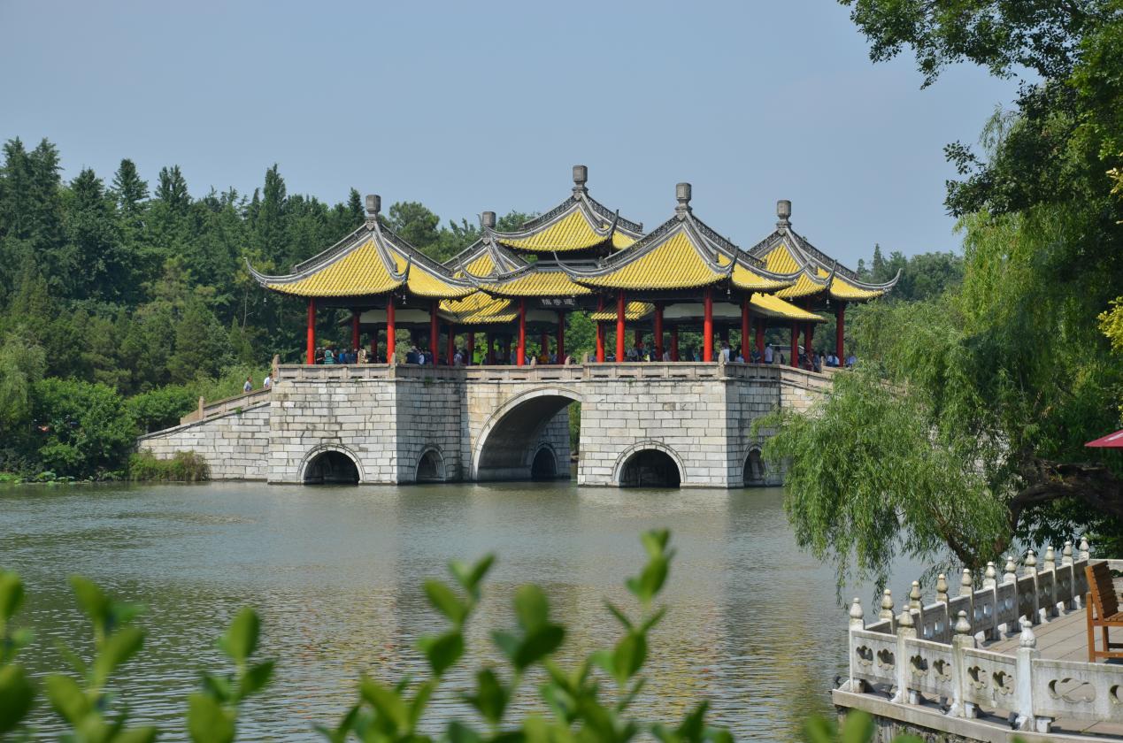 “故人西辭黃鶴樓,煙花三月下?lián)P州?!崩畎啄捴巳丝?/span>的千古絕唱平添了揚州這座古城名邑的無限風(fēng)韻。我們雖未能見到揚州三月柳絮紛飛的美景,卻領(lǐng)略到了初夏時節(jié)揚州城的熱情?!疤煜挛骱氁粺o二瘦西湖”,來到揚州第一站,當(dāng)仁不讓瘦西湖。是日藍(lán)天白云,一目千里,與周圍的美景同時映入眼簾,不經(jīng)意間就讓人心曠神怡。拍完景點的大合影之后,小伙伴們迫不及待地進(jìn)入園區(qū),一邊聽導(dǎo)游講解一邊相互拍照留念,忙的不亦樂乎。園中景象以二十四橋、五亭橋、釣魚臺、小金山給人印象最深,以“枯木逢春”一景寓意最厚,不愧于古人對瘦西湖“瘦于外部的形態(tài),秀于內(nèi)在的神韻”的評價。