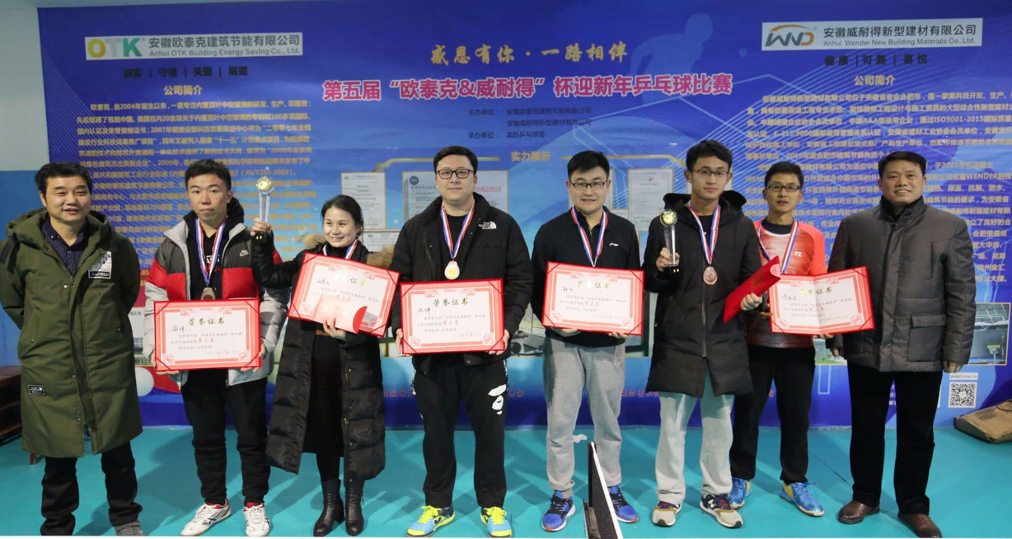 2018年12月30日,由安徽威耐得新型建材有限公司、安徽歐泰克建筑節(jié)能有限公司主辦的第五屆“歐泰克&威耐得”杯迎新年乒乓球比賽在凌躍乒乓球館隆重舉行,來(lái)自多個(gè)單位的乒乓球運(yùn)動(dòng)愛(ài)好者踴躍參加了本次比賽。