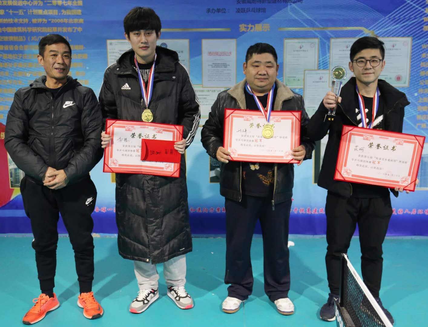 比賽開(kāi)始后,大家迅速進(jìn)入狀態(tài),爭(zhēng)奪十分激烈,球桌上不斷出現(xiàn)精彩對(duì)決,直拍、橫拍、扣球、旋轉(zhuǎn)球、弧線球等精彩扣殺、絕妙回?fù)蹙实爻尸F(xiàn)在賽場(chǎng)上。參賽選手們出色的球技、矯健的身姿、精彩的配合不時(shí)贏得陣陣掌聲與滿堂喝彩。本著“友誼第一、比賽第二、以球會(huì)友、切磋技藝”的原則,你來(lái)我往、互不相讓、展開(kāi)了激烈角逐,通過(guò)淘汰賽、半決賽和決賽的爭(zhēng)奪,最終決出了冠亞軍。安徽威耐得董事長(zhǎng)劉必武為獲獎(jiǎng)選手頒獎(jiǎng)并合影留念。